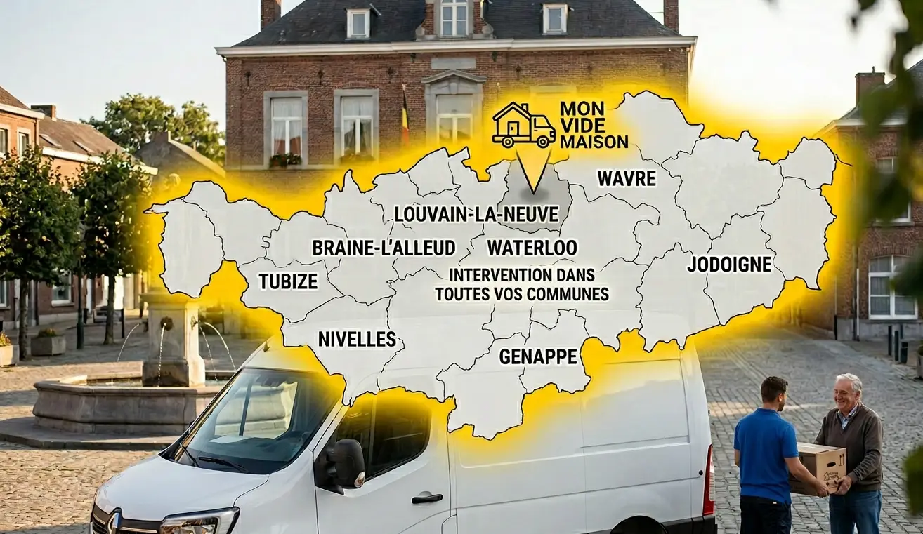Le Brabant Wallon is een provincie met vele gezichten. Er vindt men dichte stedelijke centra zoals Wavre of Louvain-la-Neuve, zeer gewilde residentiële gemeenten zoals Waterloo of La Hulpe, en uitgestrekte landelijke gebieden zoals Perwez, Jodoigne of Incourt. Deze architecturale en geografische diversiteit vereist een echte aanpassingsvermogen van elk serieus opruimingsbedrijf.